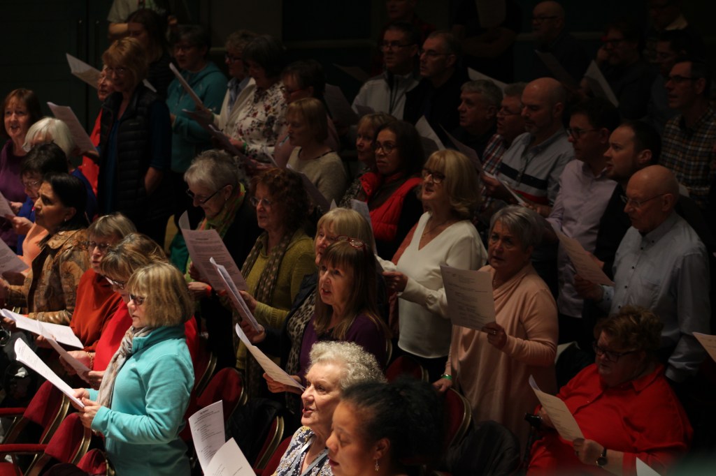 Many thanks to photographers Tony Jones and Jaro Ralph for our first gallery of images from Stoke Sings Festival 2020. Photographs feature workshop leaders Penny Vincent, Dan Hollingshurst (piano), Kate Barfield, Ashley Mellor, Greg Stephens and Mark Burke, supported by the Deaflinks Silent Choir signing in BSL, and drummer Matt. We learned “Sing Together” composed by Dan and “Stoke Lang Syne” arranged by Greg. These songs were performed as the finale of the evening concert showcasing 16 choirs from Stoke on Trent and surrounds.